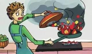 解疑释惑:油锅起火时,千万不能用水浇。因为水遇到热锅形成“炸锅”,使油火到处飞溅。
